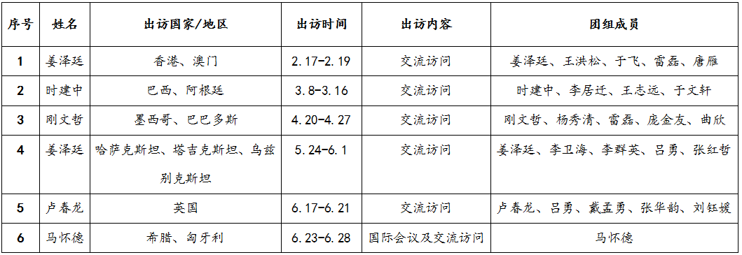 2025年校级领导干部因公出国境统计(1月-6月)